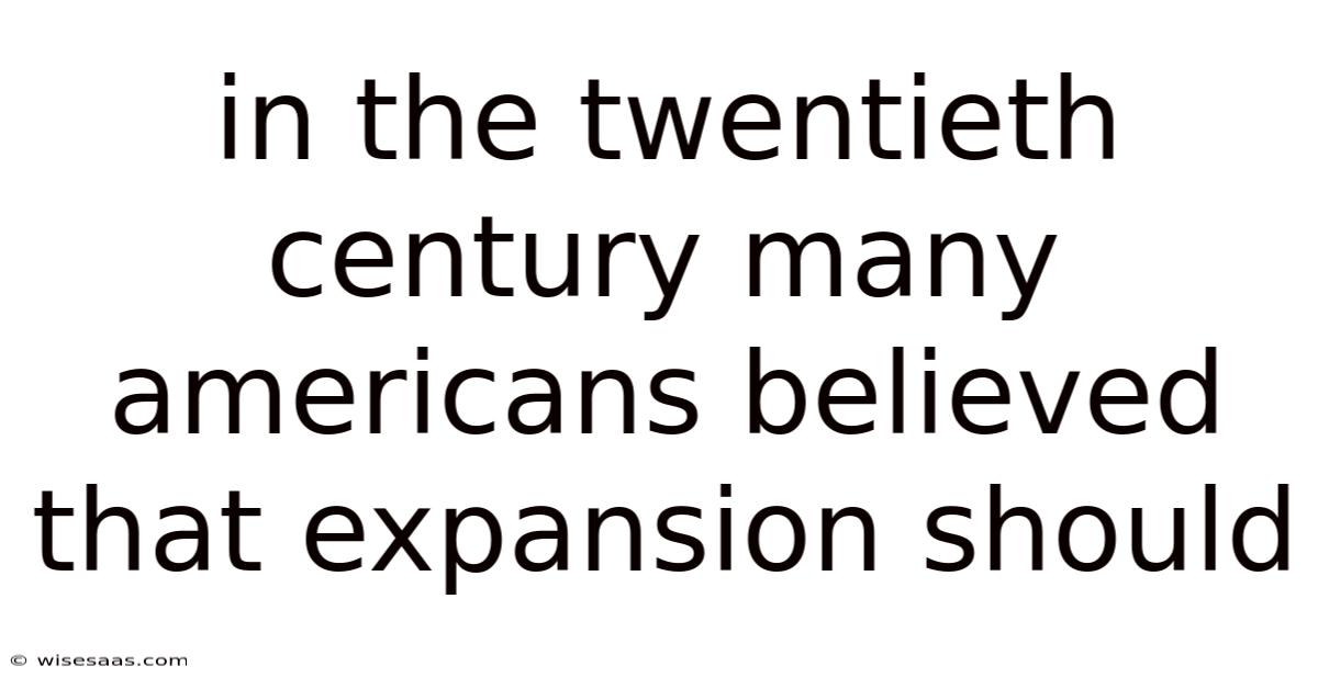 In the Twentieth Century Many Americans Believed That Expansion Should Define the Nation's Destiny
