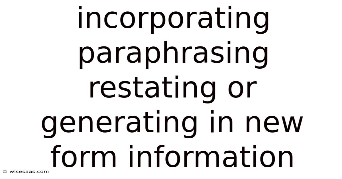 Incorporating paraphrasing, restating, or generating in new form information is a powerful skill that enhances comprehension, retention, and communication across academic, professional, and creative contexts. Worth adding: this technique transforms raw data into personalized insight, allowing readers to grasp complex concepts more readily while avoiding plagiarism and fostering original thought. By mastering the art of re‑expressing content, you not only demonstrate mastery of the subject matter but also create value for diverse audiences who may benefit from clearer, more relatable explanations.