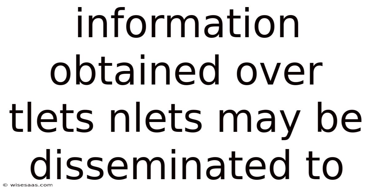 Information Obtained Over Tlets Nlets May Be Disseminated To