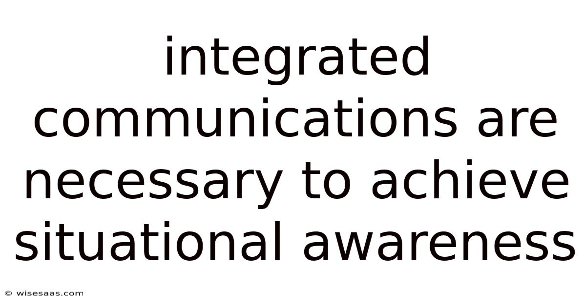 Integrated Communications Are Necessary To Achieve Situational Awareness