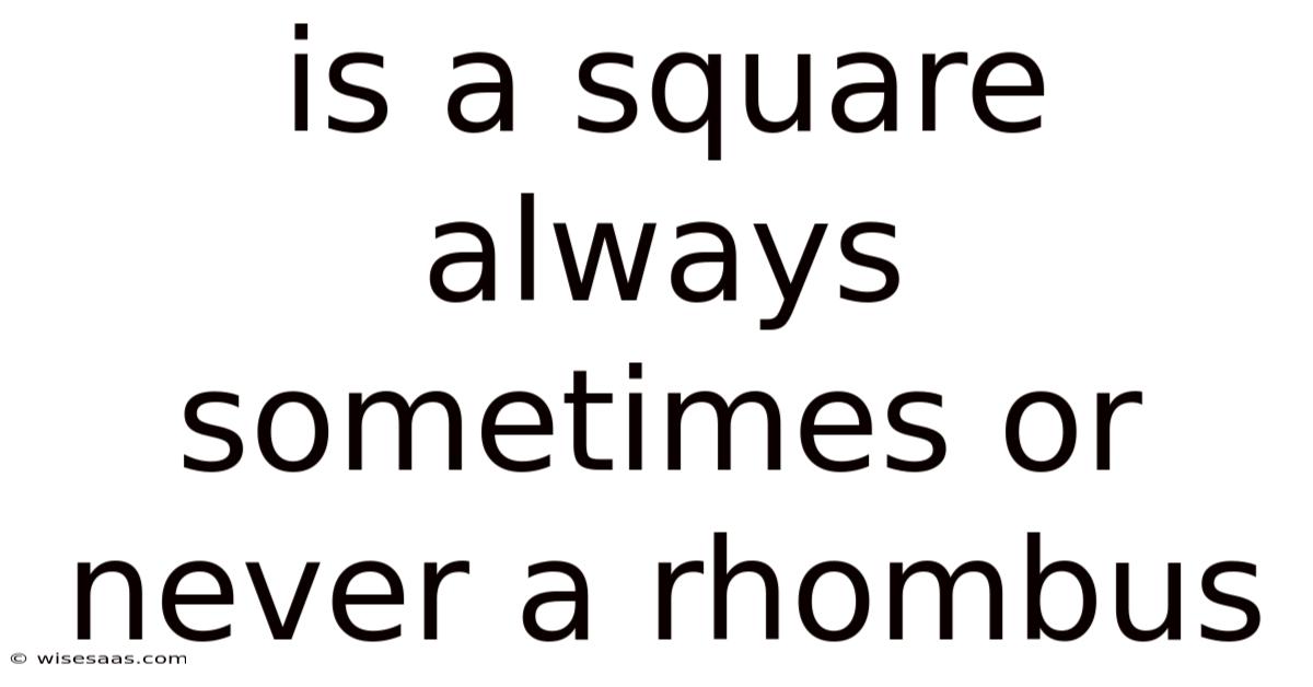 When geometry students first encounter the terms square and rhombus, they often wonder whether these two shapes are interchangeable. **” may sound simple, but answering it correctly requires a clear grasp of definitions, properties, and the subtle hierarchy within the family of quadrilaterals. In real terms, the question “**Is a square always, sometimes, or never a rhombus? Here's the thing — in this article we will explore the precise relationship between squares and rhombuses, examine the conditions that make a square a rhombus, and clarify common misconceptions. By the end, you’ll not only know the answer—a square is always a rhombus—but also understand why this conclusion matters for problem‑solving, proofs, and real‑world applications such as design, engineering, and computer graphics.