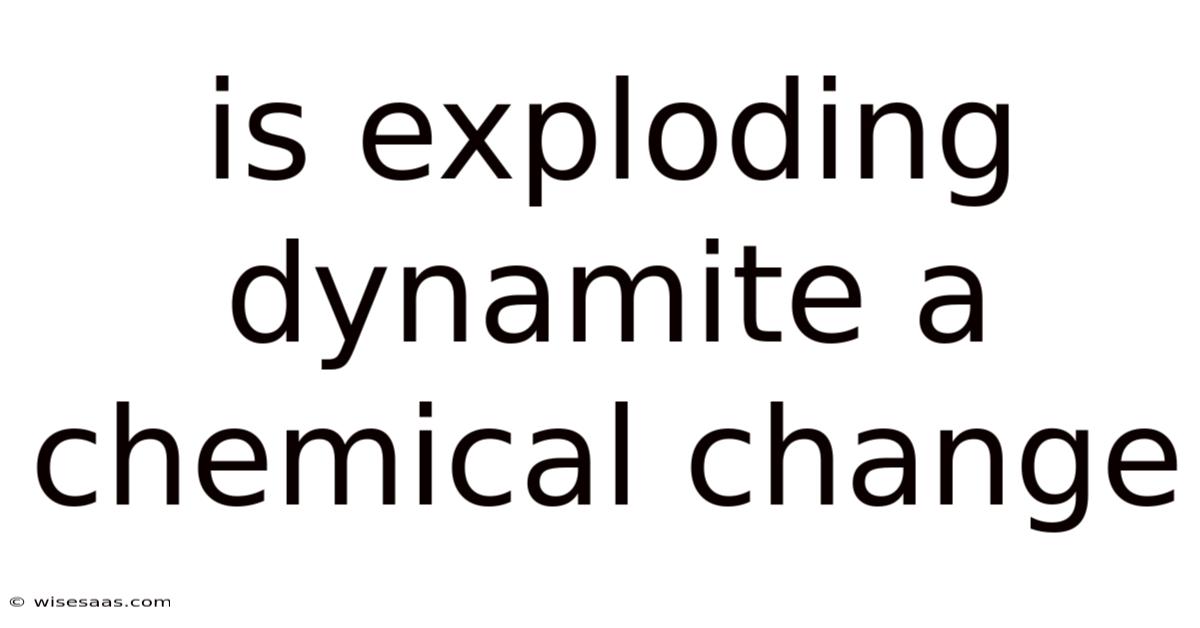 **Is the explosion of dynamite a physical or chemical change?** It is unequivocally a *chemical change* because the original molecules are transformed into new substances with different chemical identities.