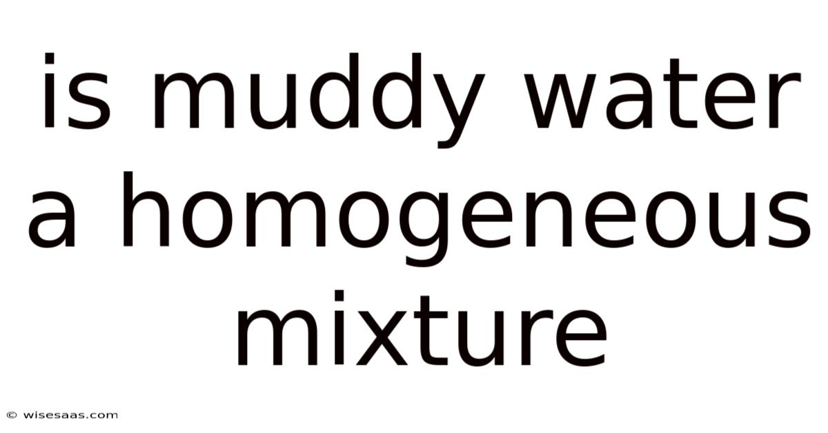 Understanding mixtures is fundamental to chemistry, environmental science, and daily activities such as cooking or cleaning. When we see a glass of water with suspended particles, we often wonder if the contents are uniformly distributed or if they separate into distinct phases. Even so, this question—is muddy water a homogeneous mixture—drives the investigation. By the end of the article, you will know the criteria that define homogeneity, see how muddy water behaves under those criteria, and be equipped to answer similar queries about other substances It's one of those things that adds up. Nothing fancy..