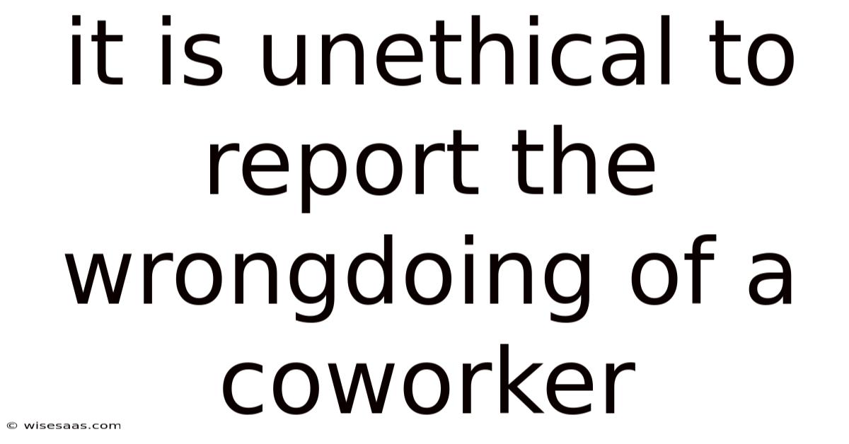It Is Unethical To Report The Wrongdoing Of A Coworker