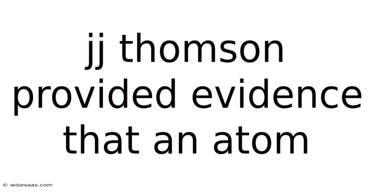 J.J. Thomson Provided Evidence That an Atom Is Divisible and Contains Negatively Charged Particles