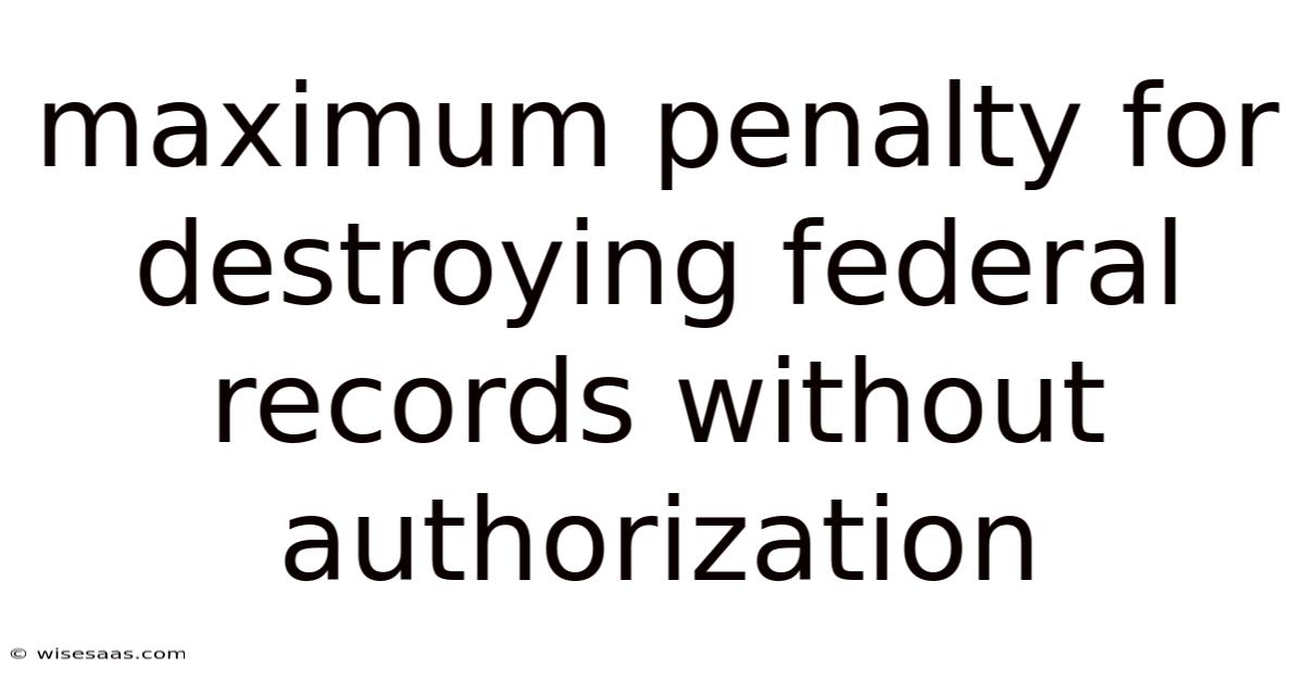 Federal records encompass a vast array of documents, including but not limited to emails, memos, reports, photographs, and digital data, created or received by government agencies in the course of their duties. The legal framework surrounding these materials is solid, recognizing their value as evidence of governmental action and decision-making processes. The destruction of such records without proper authorization is a direct affront to this system, potentially obstructing justice, hiding corruption, or erasing evidence of wrongdoing. The maximum penalty for destroying federal records without authorization serves as a critical deterrent, reflecting the gravity of the offense. This article explores the legal statutes governing record destruction, the specific penalties imposed, and the broader implications for public trust and institutional integrity It's one of those things that adds up. But it adds up..