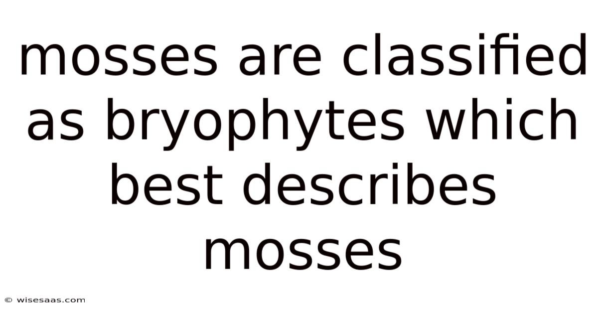 Mosses are classified as bryophytes, a group of non-vascular plants that play a crucial role in various ecosystems around the world. Bryophytes, which include mosses, liverworts, and hornworts, are among the most primitive land plants, having evolved over 400 million years ago. Mosses, in particular, are fascinating organisms that exhibit unique characteristics and adaptations that set them apart from other plant groups Worth keeping that in mind. Practical, not theoretical..