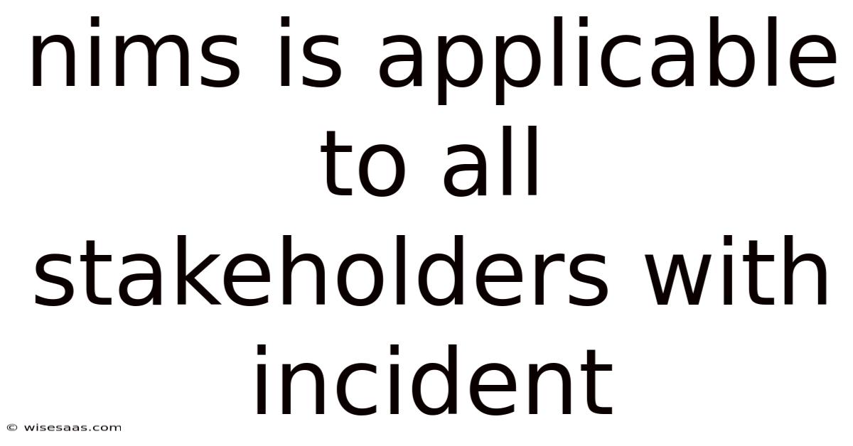 NIMS is Applicable to All Stakeholders with Incident: A Comprehensive Guide to Unified Incident Management