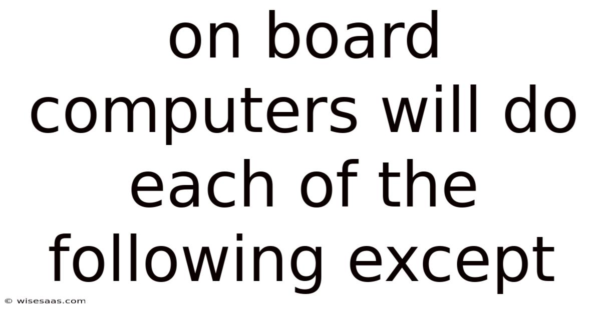 Onboard computers have become integral to modern vehicle and spacecraft operation, handling a wide range of tasks that were once performed manually. Worth adding: when educators pose the question “on board computers will do each of the following except,” they are testing the learner’s understanding of the typical capabilities of such systems and highlighting a function that lies outside their scope. Consider this: from regulating engine performance in a car to guiding a satellite’s attitude in space, these specialized processors execute countless operations naturally. This article unpacks the core functions of onboard computers, dissects a sample multiple‑choice scenario, and clarifies why one option does not belong, all while providing a clear, SEO‑optimized structure for readers and search engines alike.