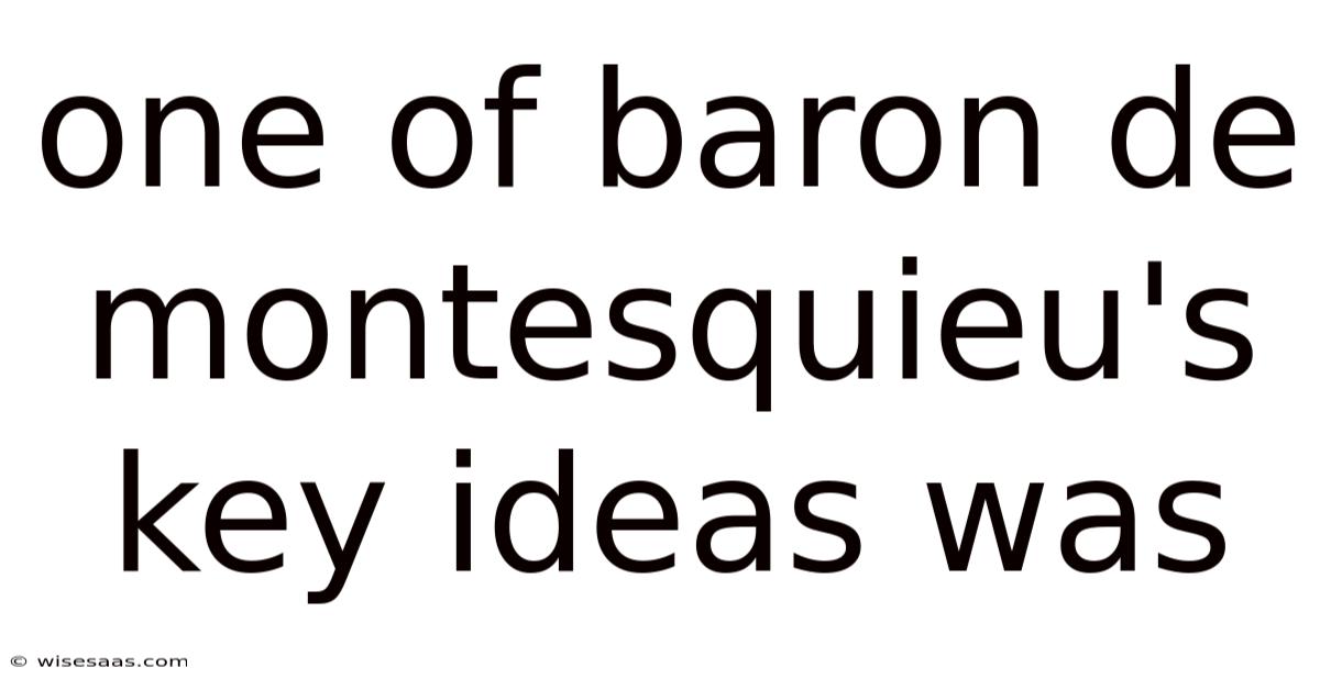One Of Baron De Montesquieu's Key Ideas Was