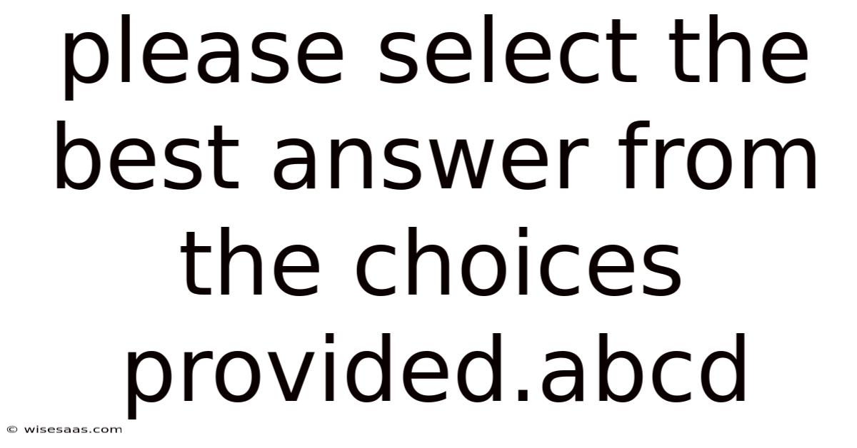 The phrase please select the best answer from the choices provided.In practice, recognizing this design philosophy shifts your approach from passive guessing to active evaluation. Consider this: its purpose is straightforward: present a clear question stem followed by four distinct options, typically labeled A, B, C, and D, and ask the test-taker to identify the most accurate response. Test creators do not simply insert random wrong answers; they craft plausible alternatives that target common misconceptions, partial truths, or contextual misinterpretations. Educational institutions and certification boards rely on multiple-choice assessments because they offer scalable, objective, and statistically reliable measurement of learning outcomes. Think about it: abcd is a standard directive that appears across countless academic and professional assessments. What makes this format deceptively challenging is the intentional design of distractors. By understanding the underlying structure of these questions, you can transform uncertainty into a repeatable problem-solving process.