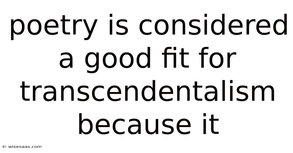 Poetry Is Considered A Good Fit For Transcendentalism Because It