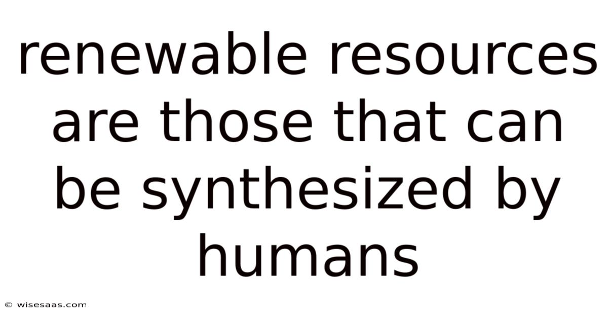 Renewable Resources Are Those That Can Be Synthesized By Humans