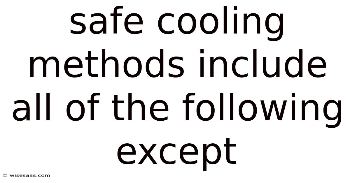 Safe cooling methods include all of the following except leaving food at room temperature to cool naturally. Proper cooling is a critical step in food safety, as it prevents the growth of harmful bacteria that can cause foodborne illnesses. When food is left in the "danger zone" between 40°F and 140°F (4°C and 60°C), bacteria multiply rapidly, increasing the risk of contamination. Understanding and applying safe cooling methods is essential for anyone handling food, whether in a professional kitchen or at home.