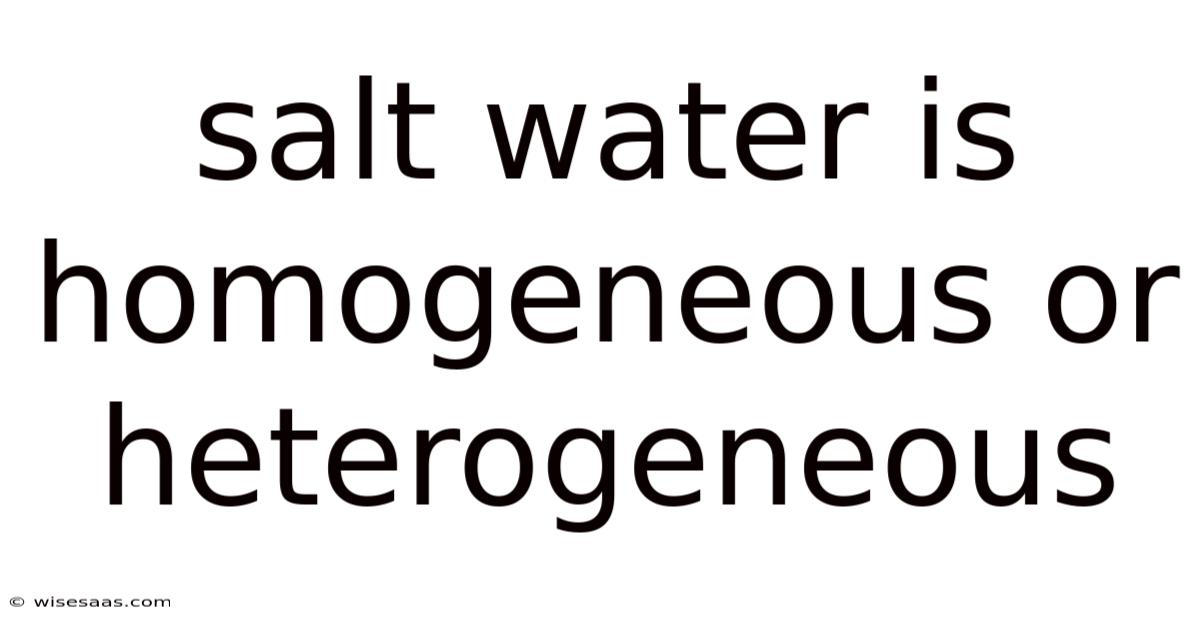 Salt water is homogeneous or heterogeneous – this question often arises in school labs, chemistry classes, and everyday curiosity about everyday liquids. The answer lies in understanding the nature of mixtures, the process of dissolution, and the visual and molecular characteristics that define homogeneity. Below is a comprehensive exploration that not only clarifies the classification of salt water but also equips readers with the tools to evaluate similar systems Simple as that..