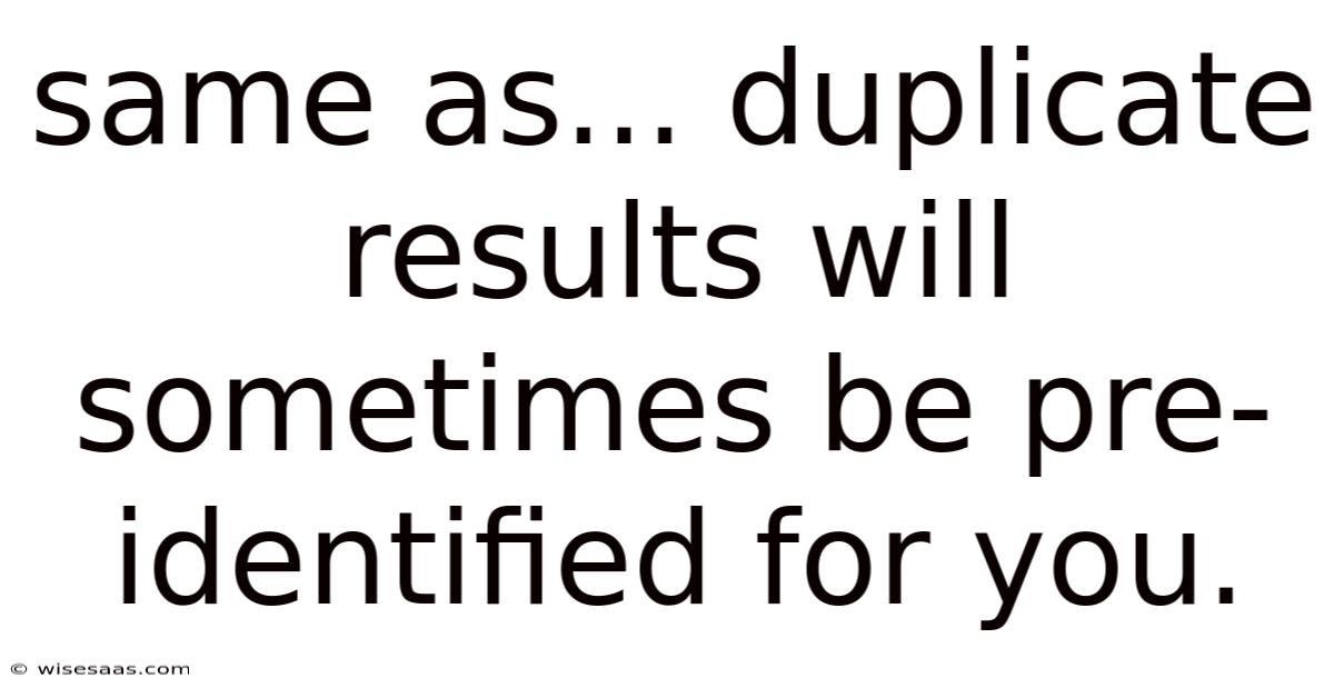 Same As... Duplicate Results Will Sometimes Be Pre-identified For You.