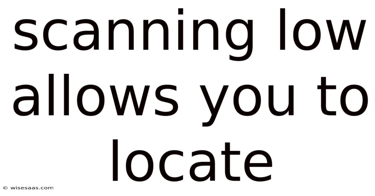 The primary advantage of scanning low lies in its ability to filter vast amounts of information quickly. This overview acts as a reconnaissance mission, highlighting potential hotspots or anomalies that warrant closer, higher-resolution examination. Day to day, instead of meticulously examining every single item at high resolution or intensity, scanning low provides a broad overview. Think of it as scanning a vast library catalog to find books on a specific subject before diving into each book's detailed contents. Scanning low saves significant time and resources, allowing you to focus your energy on the most promising leads or critical areas identified during the initial low-level survey.
