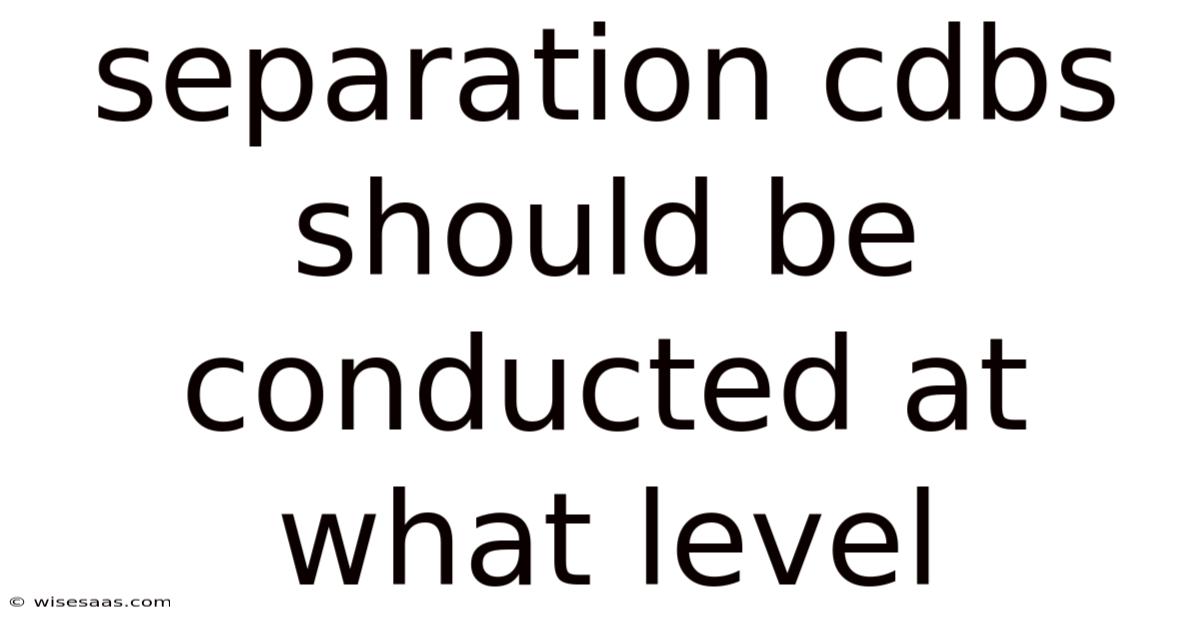 Separation CDB should be conducted at what level requires careful consideration of organizational goals, operational constraints, and stakeholder expectations. Worth adding: whether applied to data systems, organizational structures, or technical infrastructure, the appropriate level dictates how resources are allocated, risks mitigated, and outcomes optimized. This decision impacts efficiency, compliance, and the overall success of the initiative, making it a critical juncture in project management. While the precise methodology may vary depending on the context, understanding the nuances of separation levels ensures that the process aligns with both technical and strategic objectives. It demands a balance between precision and flexibility, ensuring that the chosen approach remains adaptable to unforeseen challenges while maintaining clarity and purpose.