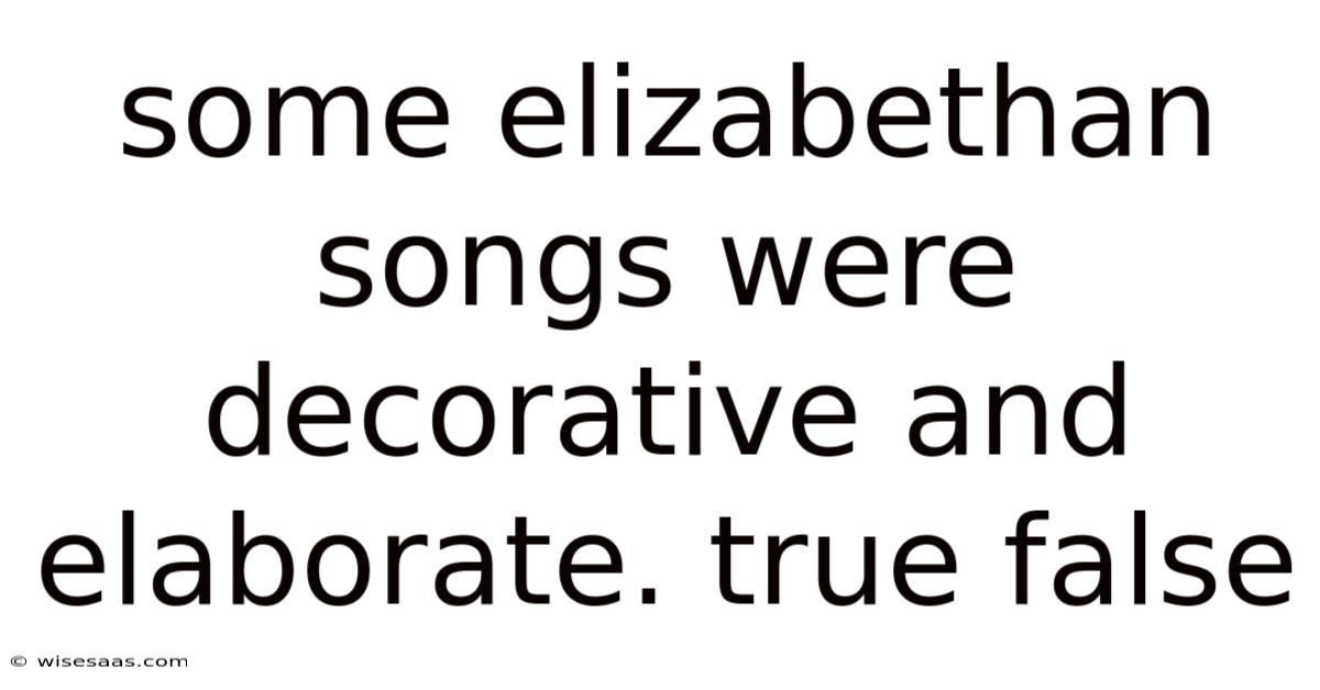 Some Elizabethan Songs Were Decorative And Elaborate. True False