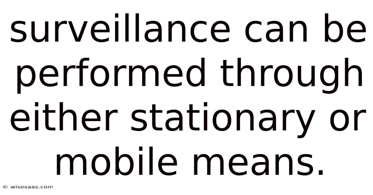 Surveillance systems have become an integral part of modern security and monitoring strategies, enabling individuals, businesses, and governments to track activities, prevent threats, and ensure safety. Day to day, at its core, surveillance involves observing or monitoring a person, place, or object to gather information. That said, the methods used to conduct surveillance vary significantly, primarily categorized into two approaches: stationary and mobile. Each method has distinct advantages, limitations, and applications, making them suitable for different scenarios. This article explores the mechanics, uses, and implications of stationary and mobile surveillance, highlighting how they complement or contrast in real-world contexts Not complicated — just consistent. Took long enough..