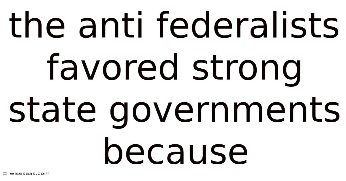 The Anti Federalists Favored Strong State Governments Because They Prioritized Local Autonomy and Resistance to Centralized Power