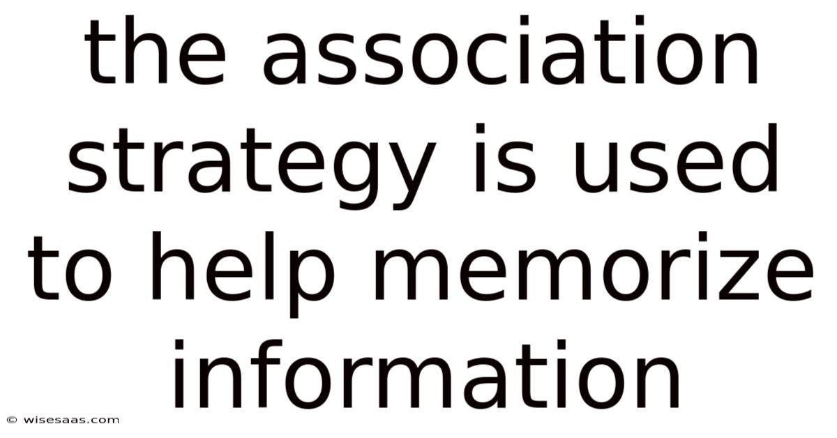 The Association Strategy: A Proven Pathway to Mastering Memory