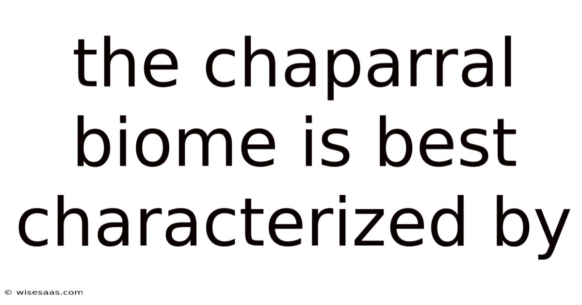 The chaparral biome exists only in Mediterranean climate regions, which are characterized by wet winters and dry summers. These specific climate conditions occur in only five locations worldwide due to global atmospheric circulation patterns: central Chile, California, the Mediterranean Basin, South Africa's Cape Province, and southern Australia.