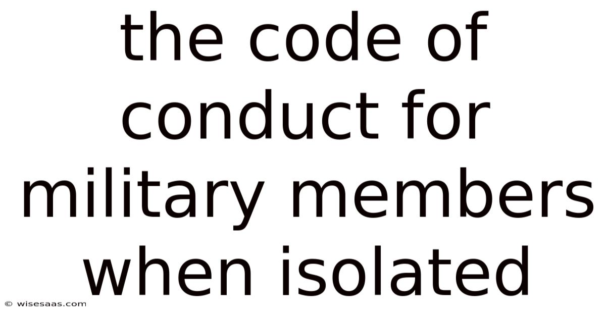 Imagine the profound disorientation of waking in a stark, unfamiliar room, your movements restricted, the sounds of the outside world muffled and threatening. For a military service member, the prospect of isolation—whether as a prisoner of war, a hostage, or a survivor stranded behind enemy lines—is one of the most daunting challenges imaginable. In these moments of extreme vulnerability, where physical freedom is stripped away and psychological pressure is relentless, a singular framework provides guidance, purpose, and a crucial anchor to one’s identity: the U.Here's the thing — s. Military Code of Conduct. Because of that, this set of ethical principles is not merely a list of rules but a profound testament to the values of duty, honor, and country, designed specifically to govern the behavior of American armed forces members when they are isolated from friendly control. It is a mental and moral survival kit, forged in the crucible of past conflicts, that dictates how to resist, endure, and return with honor.