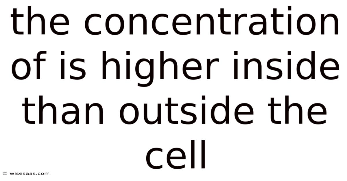 The concentration of certain ions is remarkably higher inside cells than in the surrounding extracellular fluid, creating a fundamental electrochemical gradient essential for life. This phenomenon, particularly evident with potassium ions (K+) and sodium ions (Na+), forms the basis of numerous cellular functions, from nerve impulse transmission to nutrient absorption. Understanding how cells maintain these concentration differences reveals the involved machinery of cellular homeostasis and the elegant solutions evolution has developed to manage electrochemical balance Small thing, real impact. Turns out it matters..