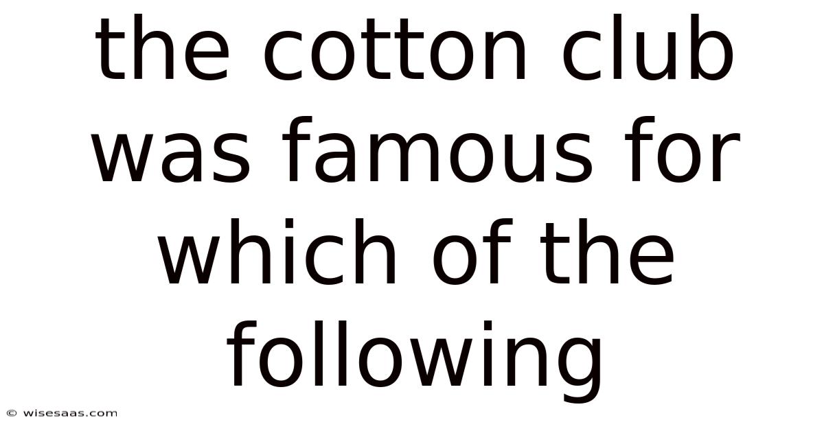 The Cotton Club Was Famous For Which Of The Following