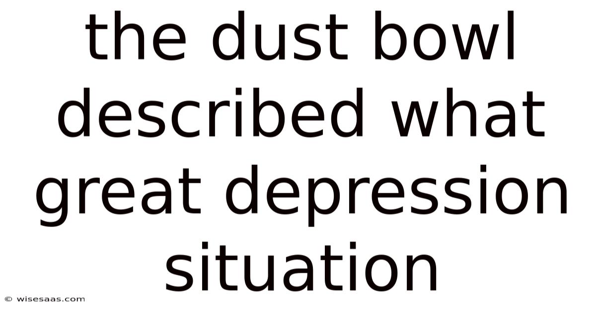 In essence, the dust bowl described what great depression situation looked like on the ground: a landscape where environmental ruin and economic collapse fed each other, leaving little room for recovery without coordinated intervention.