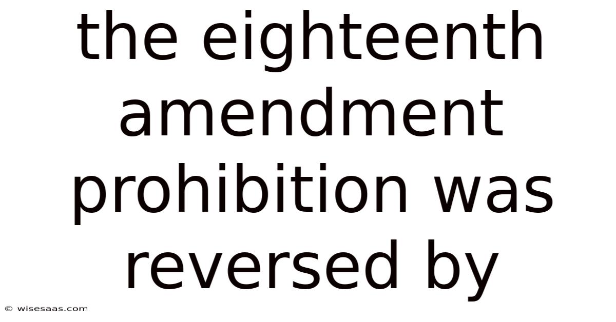 The Eighteenth Amendment Prohibition Was Reversed By