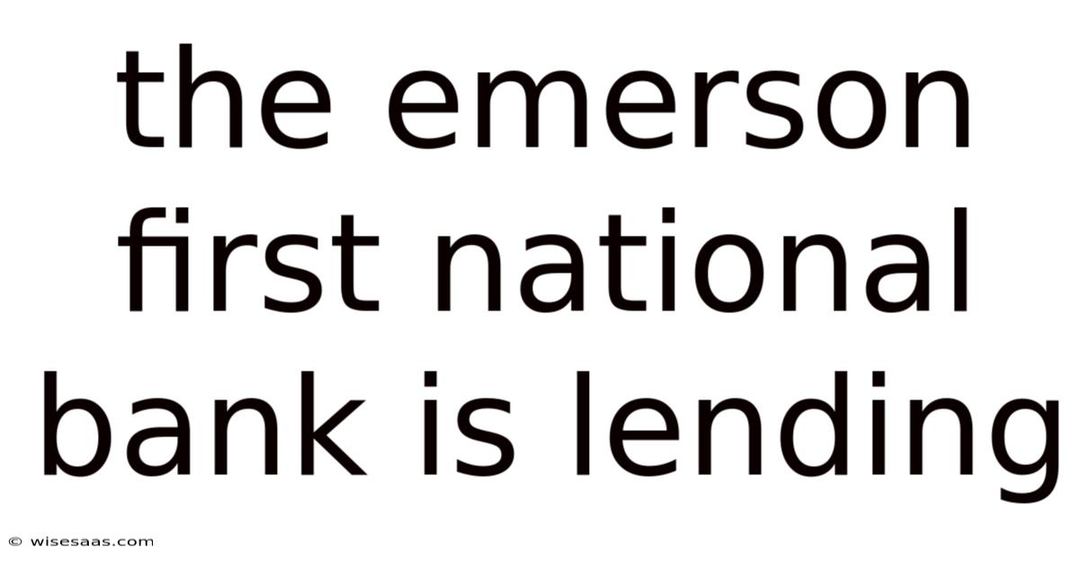 The Emerson First National Bank Is Lending
