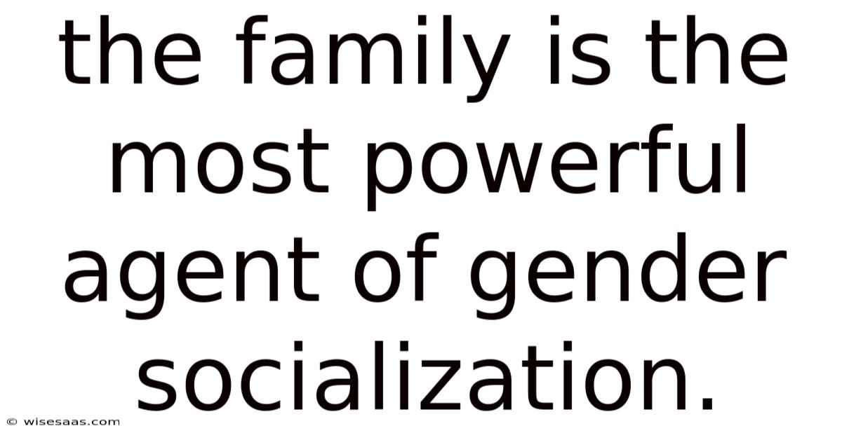 The Family Is The Most Powerful Agent Of Gender Socialization.