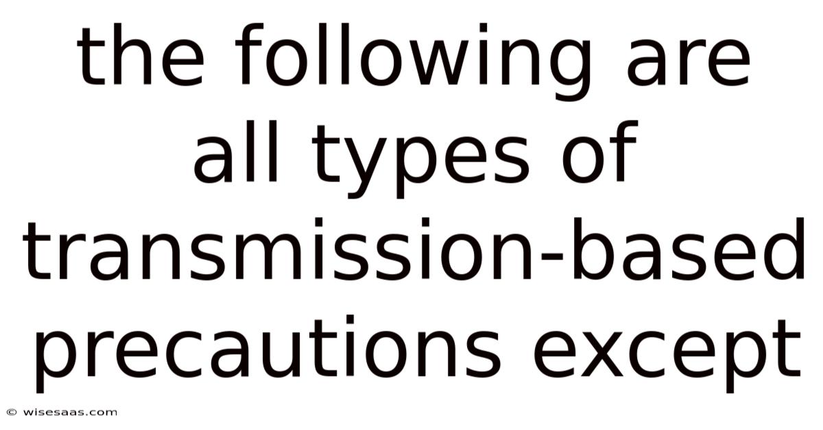Also worth noting, awareness of the types of transmission-based precautions is essential for healthcare professionals. On the flip side, Understanding the differences between contact, airborne, and droplet precautions allows for better decision-making in clinical settings. Practically speaking, for example, a healthcare worker dealing with a patient with a suspected viral infection would need to apply airborne precautions if the disease is airborne, while contact precautions would be necessary for a patient with a skin infection. This knowledge ensures that the right measures are taken at the right time.