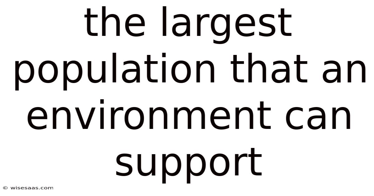 So, to summarize, the largest population that an environment can support is determined by its carrying capacity, which is influenced by resource availability, environmental conditions, species interactions, and human activities. Maintaining a balance between population sizes and available resources is essential for the health of ecosystems and the survival of species. By understanding and respecting carrying capacity, we can work towards a more sustainable future for both nature and humanity.