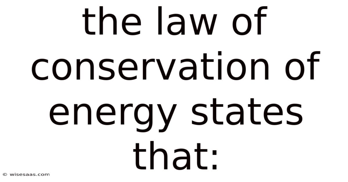 The law of conservation of energy is one of the most fundamental principles in science, shaping our understanding of how energy moves and transforms throughout the universe. At its core, this law states that energy cannot be created or destroyed; it can only change forms. Because of that, whether you're studying physics, chemistry, or even everyday life, grasping this concept is essential for building a strong foundation in science. In this article, we will explore the law of conservation of energy in depth, breaking it down into clear explanations, practical examples, and key takeaways that will help you master this essential principle Turns out it matters..