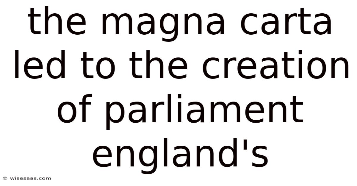 The Magna Carta Led to the Creation of Parliament in England