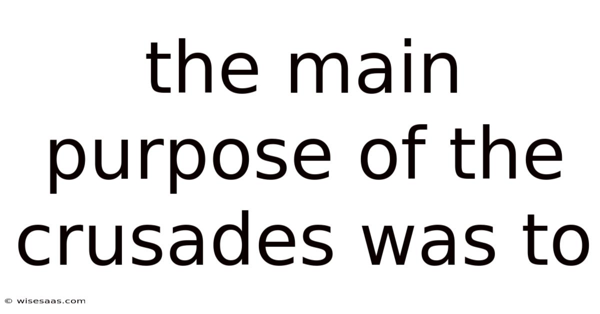 The Main Purpose of the Crusades Was To: Unpacking a Multifaceted Historical Call to Arms