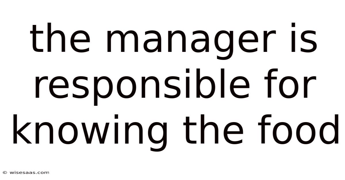 The Manager is Responsible for Knowing the Food