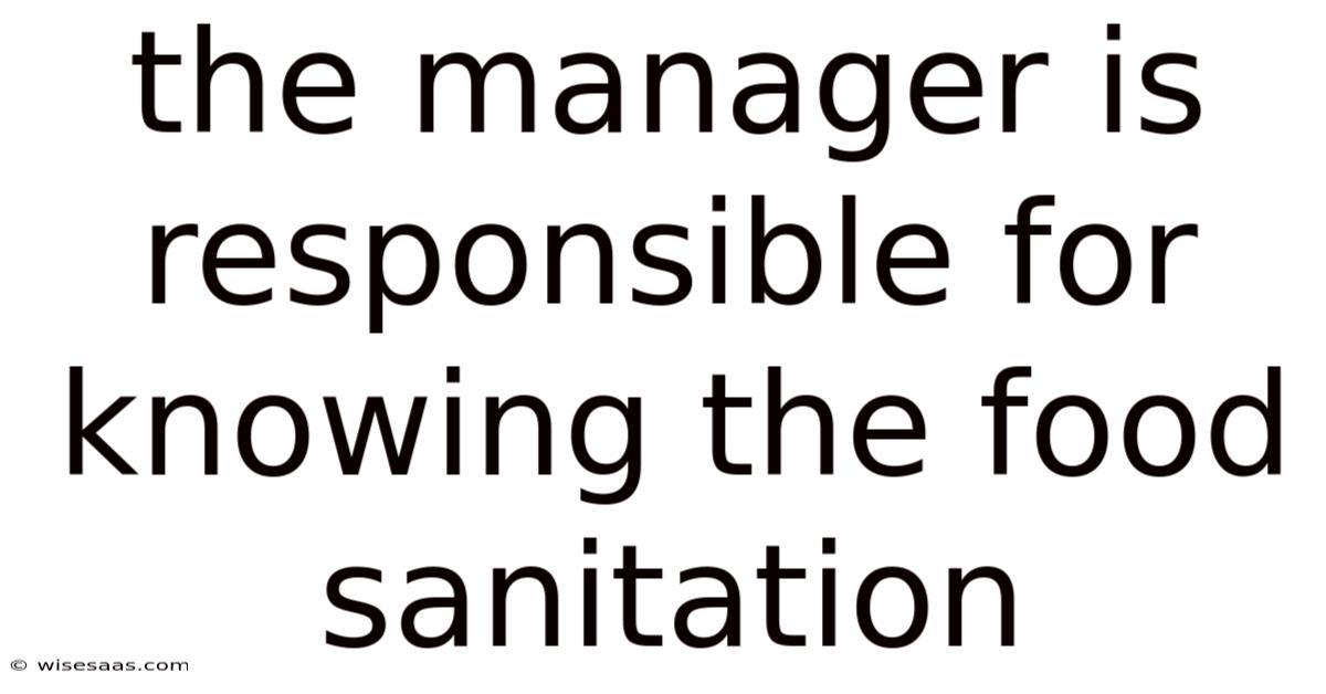 The manager of a food establishment is responsible for ensuring that all aspects of food handling, preparation, and service are conducted in a safe and sanitary manner. Food sanitation is a critical component of this responsibility, as it directly impacts the health and well-being of customers. In this article, we will explore the importance of food sanitation, the role of the manager in maintaining a sanitary environment, and the steps that can be taken to ensure compliance with food safety regulations Simple, but easy to overlook..