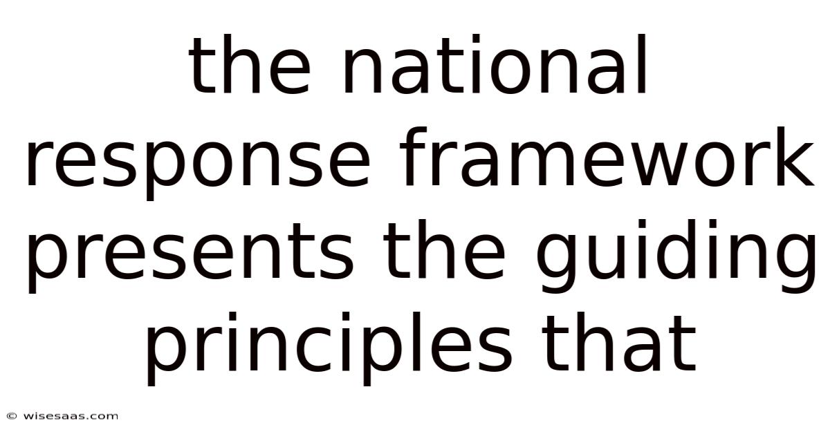 The National Response Framework: Guiding Principles for Effective Emergency Management