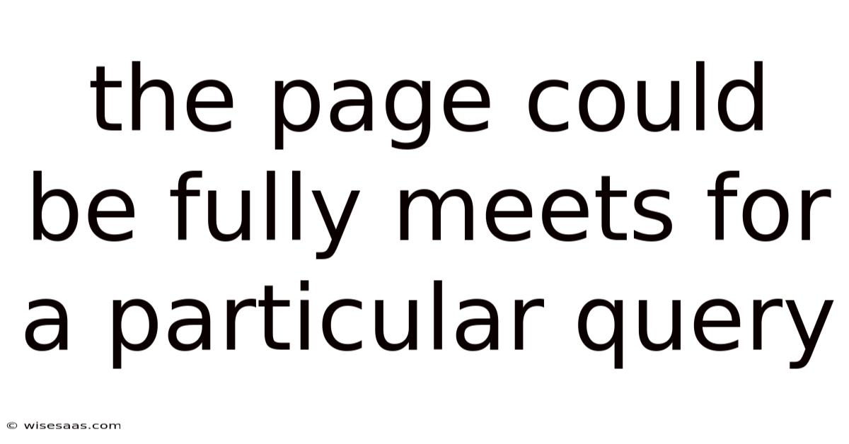 When a user types a query into a search engine, they expect to find a page that fully meets their needs. But what does it truly mean for a page to be fully meets for a particular query? Think about it: in the world of search engine optimization (SEO) and user experience, this concept goes far beyond simply matching keywords. A page that is fully meets for a query must deliver the right content, in the right format, at the right time, and in a way that satisfies the user's intent Easy to understand, harder to ignore. Turns out it matters..