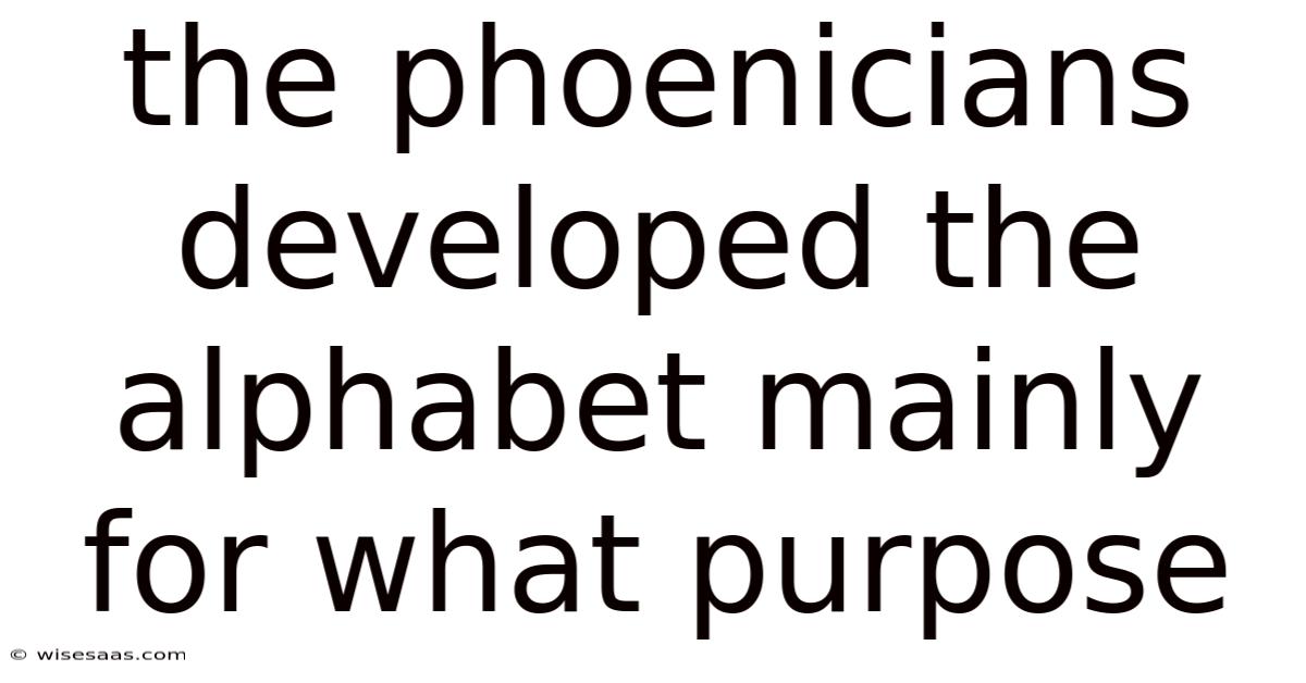 The Phoenicians developed the alphabet mainly for what purpose? To meet the pragmatic demands of a mobile, trade‑driven society that required a fast, inexpensive, and universally understandable means of recording information. Consider this: by distilling writing down to a set of consonant symbols, they created a tool that not only streamlined commerce and administration but also sparked a linguistic revolution that reshaped communication across civilizations. The ripple effects of this innovation are still evident today, reminding us that sometimes the most profound technological advances arise from the simplest of practical needs.