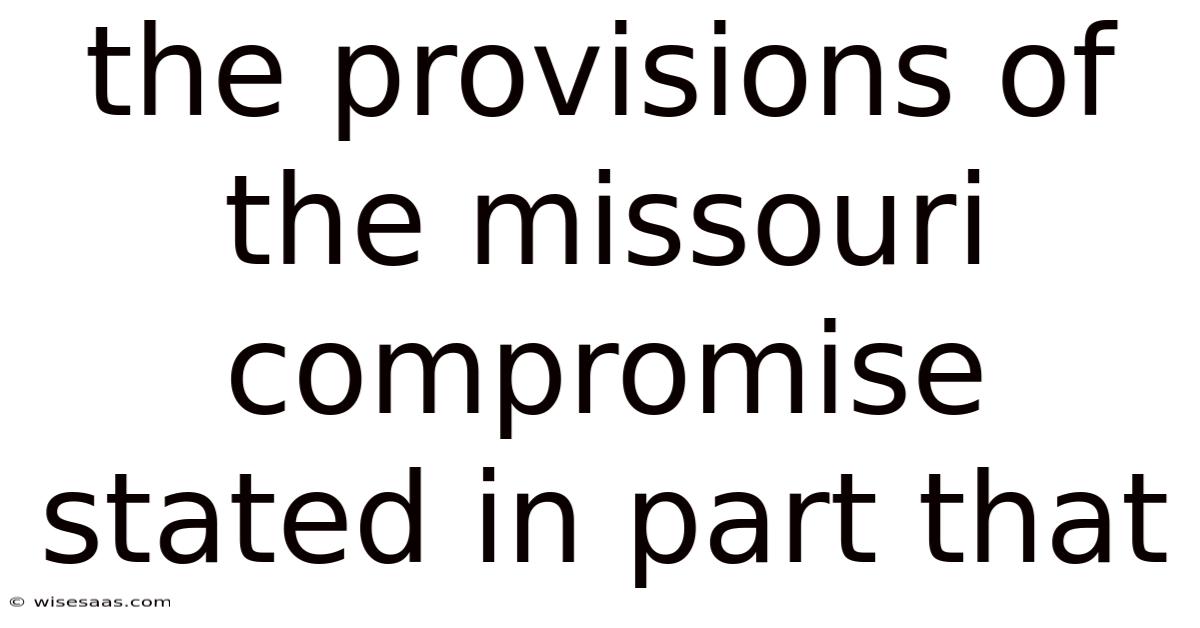 Congress ultimately crafted a three‑part solution designed to preserve sectional equilibrium. The provisions of the Missouri Compromise stated in part that: