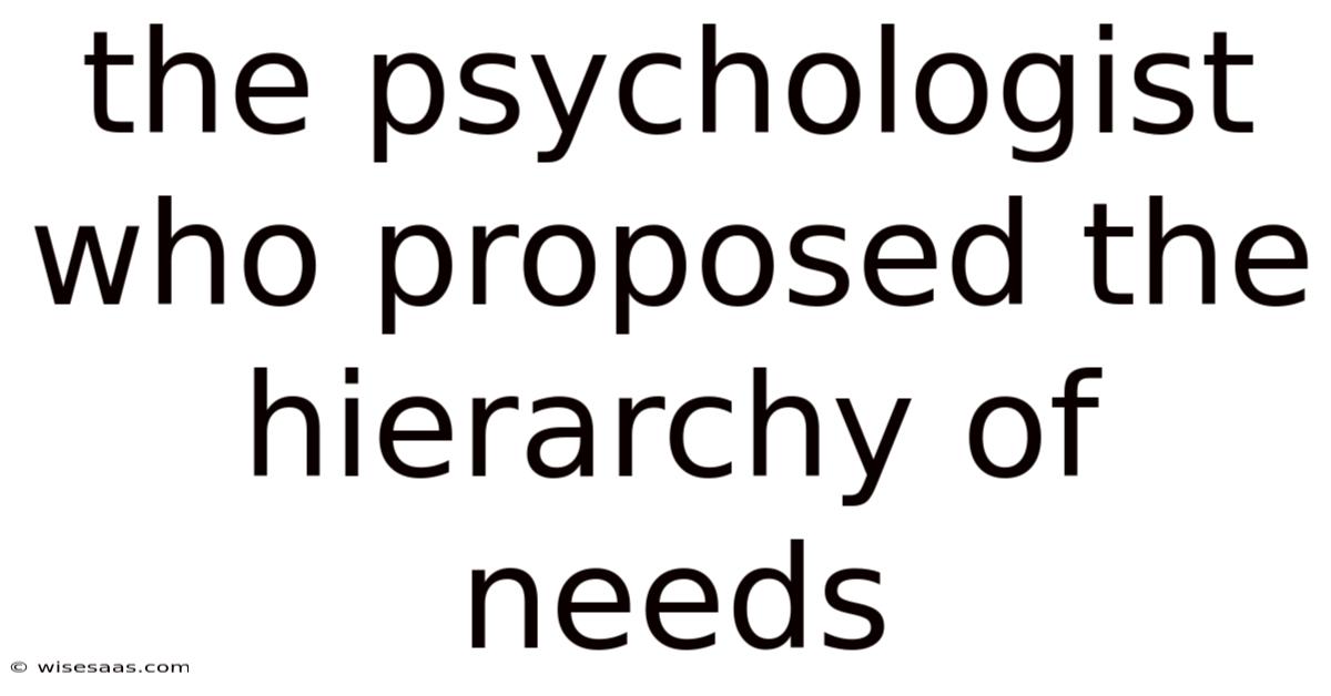 The Psychologist Who Proposed The Hierarchy Of Needs