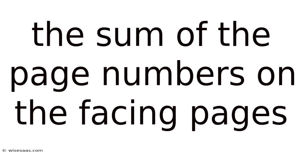 Facing pages are the two pages that appear opposite each other when a book is open. Here's one way to look at it: if you open a book to pages 10 and 11, these are considered facing pages. Because of that, similarly, pages 2 and 3, or 50 and 51, follow the same pattern. Practically speaking, these pages are always consecutive numbers, meaning one is immediately after the other in the sequence. This relationship is fundamental to understanding why their sum behaves in a predictable way It's one of those things that adds up..