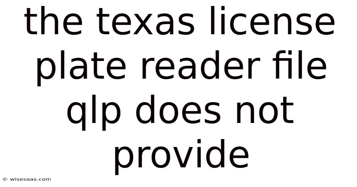 Understanding the Texas License Plate Reader File QLP and Its Limitations