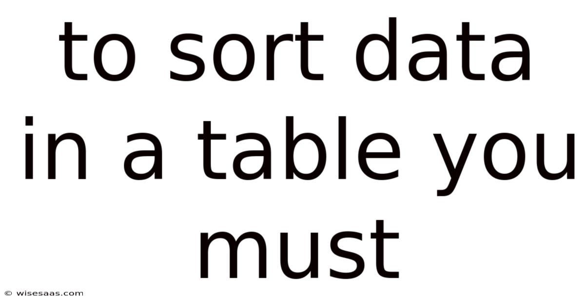 To Sort Data In A Table You Must