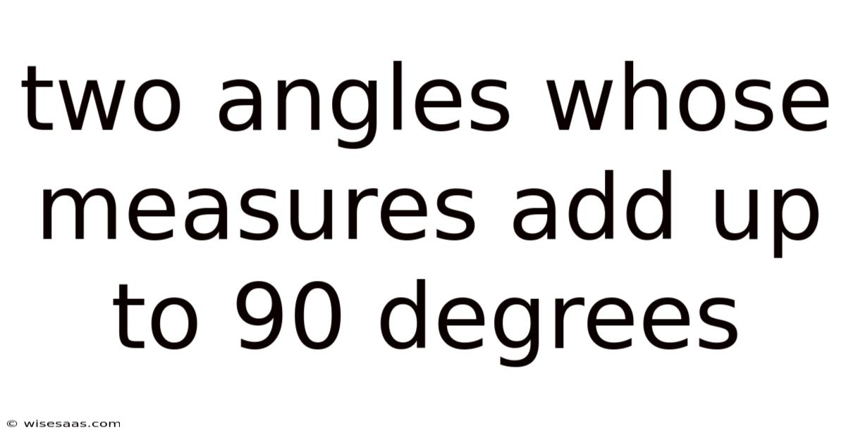Complementary angles are two angles whose measures sum up to exactly 90 degrees. This relationship is crucial because it allows us to determine the measure of one angle when we know the measure of the other. To give you an idea, if one angle measures 30 degrees, its complementary angle must measure 60 degrees to make the total 90 degrees Surprisingly effective..